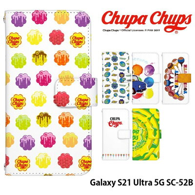 スマホケース Galaxy S21 Ultra 5G 手帳型 ケース SC-52B カバー galaxy21ultra ギャラクシーs21 ウルトラ s21ウルトラ sc52b デザイン chupa chups チュッパチャプス ストラップホルダー