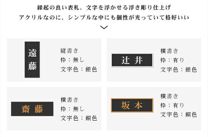 【送料無料】表札 アパート 表札激安 マンション表札 縦書き 長方形表札 浮き彫り ナチュラル おしゃれ ポスト表札 ネームプレート 玄関 アパート フォント8種 2色から選べる 新築祝い 引越祝い【アクリル表札・浮き彫り 8×18cm/8×20cm 】