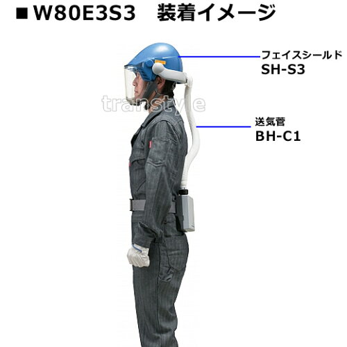 ■用途 各種粉体取扱作業 一定流量形電動ファン付隔離式防塵マスク W80E3S3使用可能商品 送気菅カバー以外の商品は商品本体には付属しております。