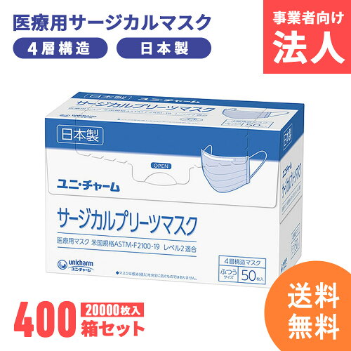 【計20,000枚】サージカルマスク ユニチャーム 不織布 日本製 医療用マスク 4層構造 使い捨て 小さめ ふつう ホワイト白 ブルー青 国産 マスク 法人【400箱セット】