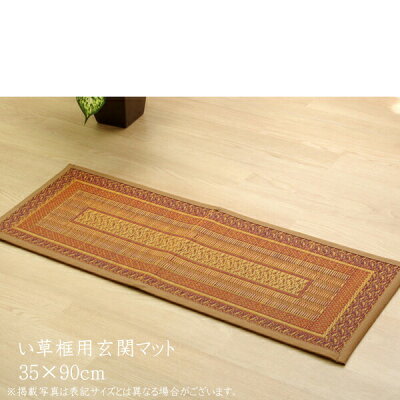 wi(ワイン) 純国産 い草框用玄関マット 「fランクス」 サイズ 約35×90cm カラー ベージュ/ワイン 組成 表地=い草(九州産) ※紋織 裏地=ウレタンフォーム6mm ヘリ=綿100% 原産国 日本製(純国産) ■九州産のい草を使用した上がり框用の玄関マットです。