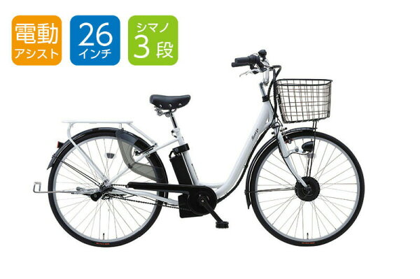 商品説明 本体サイズ 26インチ (組立時)約W187.5×D52×H110cm サドル高さ:約81.5〜92cm 規格 ●商品重量:約23.0kg ●個装サイズ:約W186×D29×H105.5cm ●個装重量:約29.7kg ●バッテリー:リチウムイオンバッテリー(容量:5.8Ah) ●充電時間:約4時間 ●走行距離:約35km(充電1回分/エコモード時) ●アシスト切替:3モード(エコ・平坦・坂道) ●仕様:アシスト機能、内装3段変速、LEDライト、前カゴ、サークルキー(本体/バッテリー共通キー)、耐摩耗タイヤ ●生産国:中国 ●JANコード:WH/4573197763431、NY/4573197763455、BR/4573197763448 【防犯登録について】 ※防犯登録は、防犯登録加盟の自転車店、また地域によっては警察署・交番でも登録が可能です。