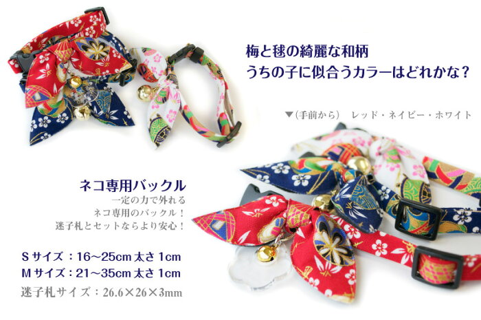 猫 首輪 和柄毬りぼん < 鈴付き仕様 > セーフティーバックル 和柄 和風 かわいい 梅模様