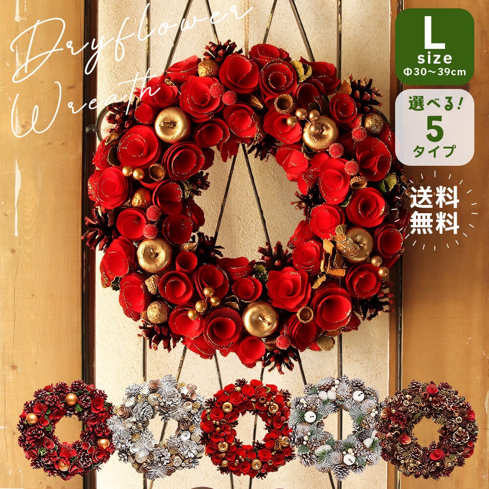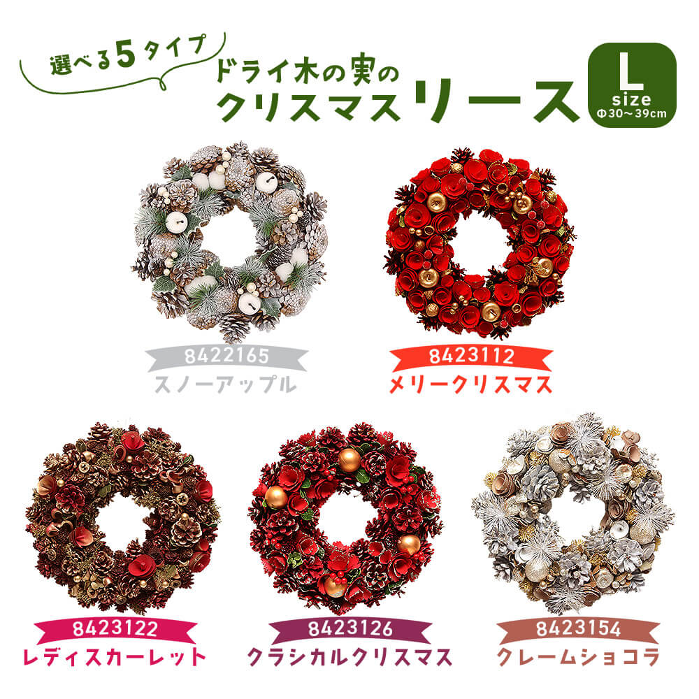 《 クリスマス リース 》★即日出荷★FOYER 送料無料 ドライ木の実のクリスマスリースL 大きい 壁掛け ドライフラワー 玄関造花 クリスマスリース スワッグ ハンガー ツリー クリスマスツリー 葉っぱ
