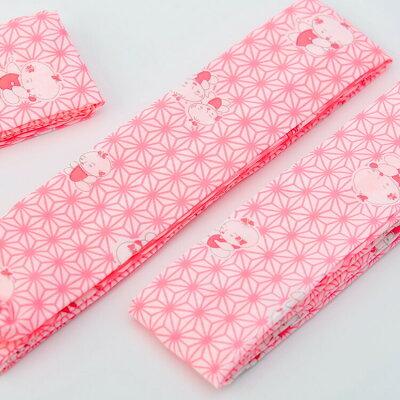 可愛らしいピンク地の麻の葉に赤子模様がレトロな雰囲気の腰紐です。