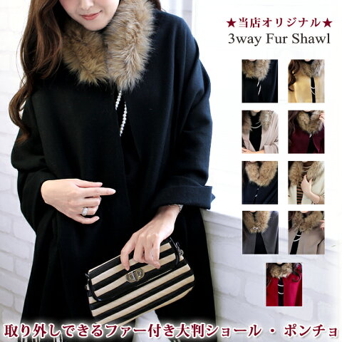 【クーポン配布中】ファー 襟 付き ストール ショール 大判 厚手 レディース 冬 用 フェイクファー ファー襟 取り外し 可能 無地 全9色 a3 防寒 着物 羽織 成人式 振袖 プレゼント ギフト 母の日
