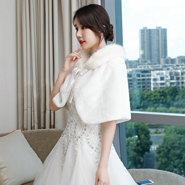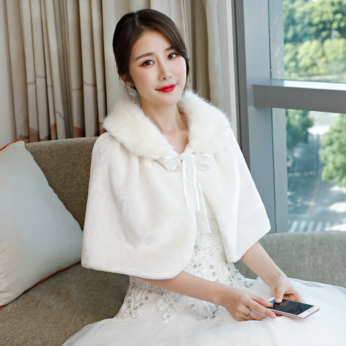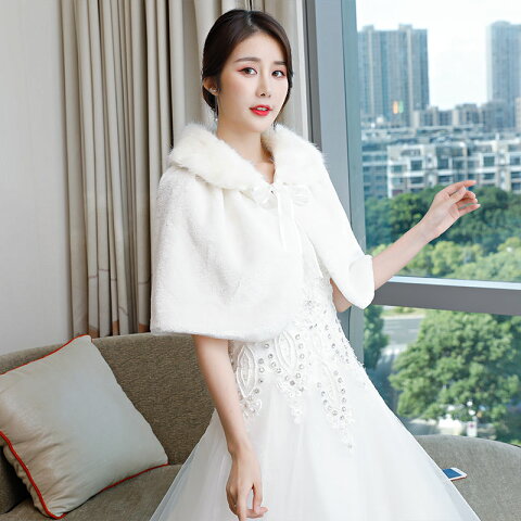 ウエディングショール ブライダルケープ 冬のケープ パーティー ショール オフホワイト 結婚式 姫系/姫風 ウエディング肩掛け ブライダルショール 成人式 二次会 演奏会 着痩せ 編み上げ 肩掛け 花嫁 ウエディングドレス ショール