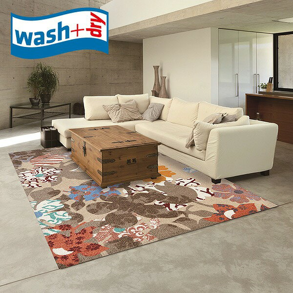 ラグマット wash+dry K011K Boogie 140×200cm 柄物 おしゃれ 滑り止めラバーつき(代引不可)【送料無料】