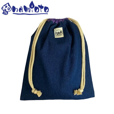グレーパープル×インディゴブルー【new 巾着大】namioto オリジナル 日本製 自社工場 安心安全 ハンドメイド 手作り 通園通学 入園入学 キッズ ママ パパ 巾着L