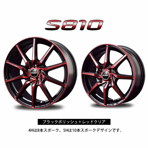 MID ユーロスピード S810 15インチ 4.5J 4H-100 ブラックポリッシュ+レッドクリア 法人宛て送料無料 ホイール 1本価格