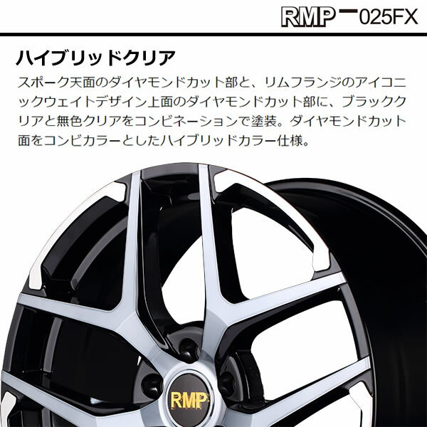 MID RMP 025FX 19インチ 8J 5H-114.3 ブラックポリッシュ/ハイブリッドクリア/ゴールド (センターキャップカラー) 法人宛て送料無料 ホイール 1本価格