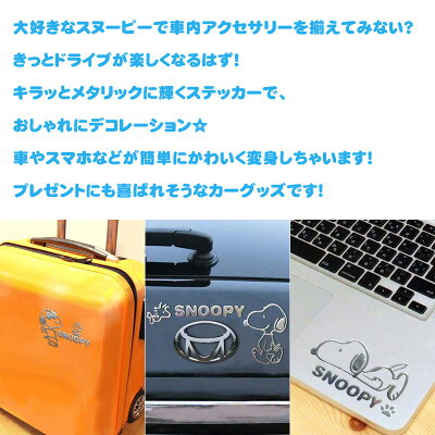 エンブレムステッカー スヌーピー 明邦 〈 車 ステッカー メタリック シルバー SNOOPY 目印 カーアクセサリー ファンシーグッズ スーツケース パソコン 〉FM