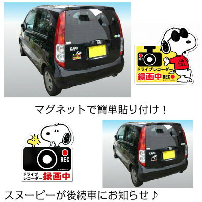 スヌーピー ドライブレコーダー マグネットサイン カー用品 車 カーグッズ キャラクター サイン ドライブレコーダー マグネット 録画中 運転 通勤 ステッカー 搭載車 カメラ 撮影中 あおり 防止 車上荒らし 追突 安全運転 セキュリティ かわいい 新車 送料無料