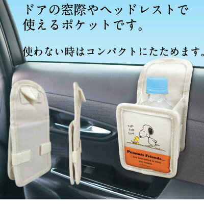 SNOOPY スヌーピドアサイドポケット SN138 ドアサイド簡単取り付け お菓子等収納便利 ヘッドレスト 吊り下げ 後部座席 使用可能 プレゼント キャラクターグッズ ピーナッツフレンズ クルマグッズ 車用品 カーグッズ 明邦 収納 便利 かわいい ギフト 送料無料